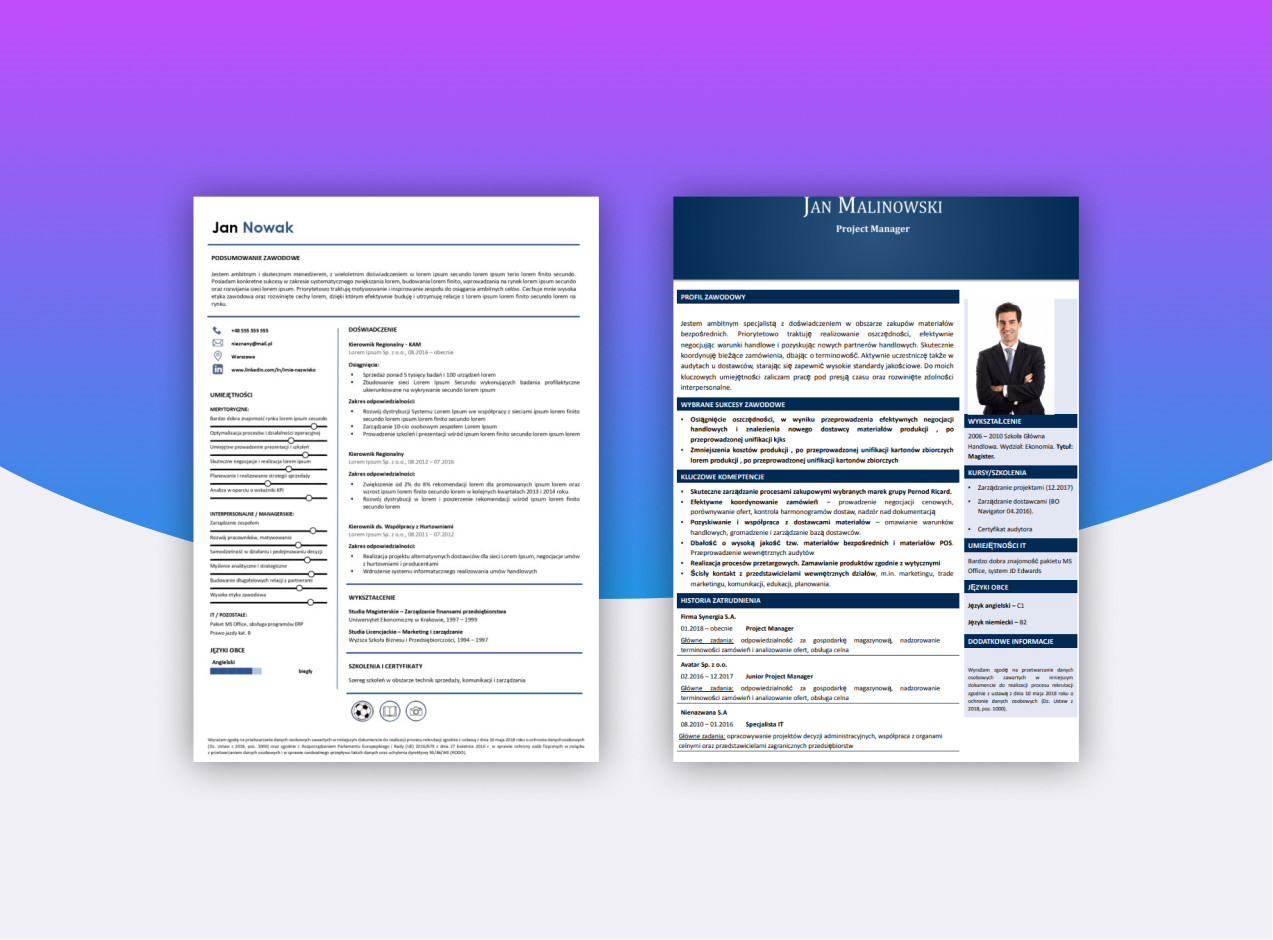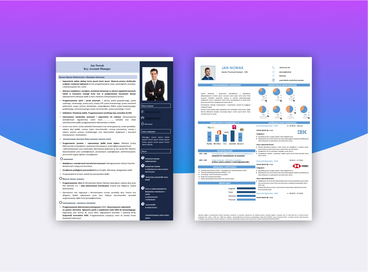 Dbamy, by były idealnie dopasowane do specyfiki branży i oczekiwań rekruterów. Wiemy, jak potężne jest pierwsze wrażenie, dlatego nasze realizacje charakteryzuje przejrzystość i profesjonalizm. Prezentujemy Twoje umiejętności w najbardziej korzystnym świetle.